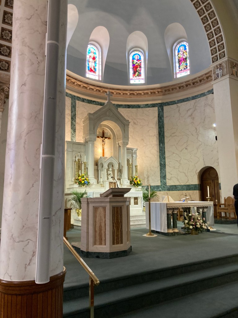 Following our brief introduction, I asked Father if I could give him a hand removing the ropes that had been used to cordon off those pews that were inoperable in a socially distanced world. They wouldn’t be needed any longer, as the Diocese of Manchester joined so many other in lifting the restrictions that had been governing our faith lives for the last 14 months.
