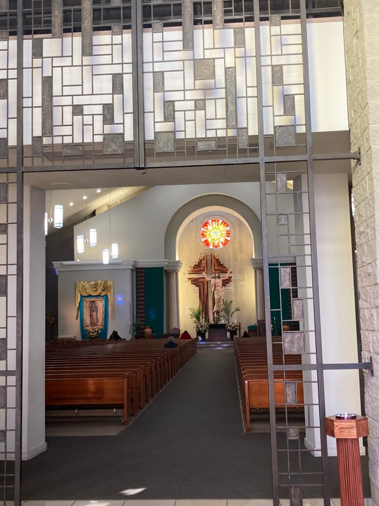 Flummoxed, I decided to go south to El Paso, where I was expecting to make a visit later in the year. I figured I could attend Mass on Friday, and then if the mountain roads into Albuquerque were still too rough for my Ford Fiesta, I’d just head east out of El Paso and mosey back home to the Midwest over more Midwestian terrain.