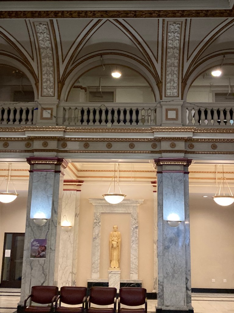 Christ Our Hope is only 10 years old. It’s a unique parish, set inside the historic former New Washington Hotel, which had already been converted to a 240-room residence building for low-income men and women. The apartments are run by Catholic Housing Services, which is how the parish eventually came to be. The worship space is the old dining room for the New Washington Hotel.