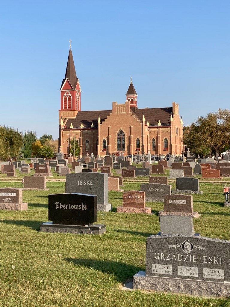 This is St. Stanislaus in Warsaw, N.D. If the names of the town and church didn’t give away the town’s origins, the names on the adjacent headstones surely do.