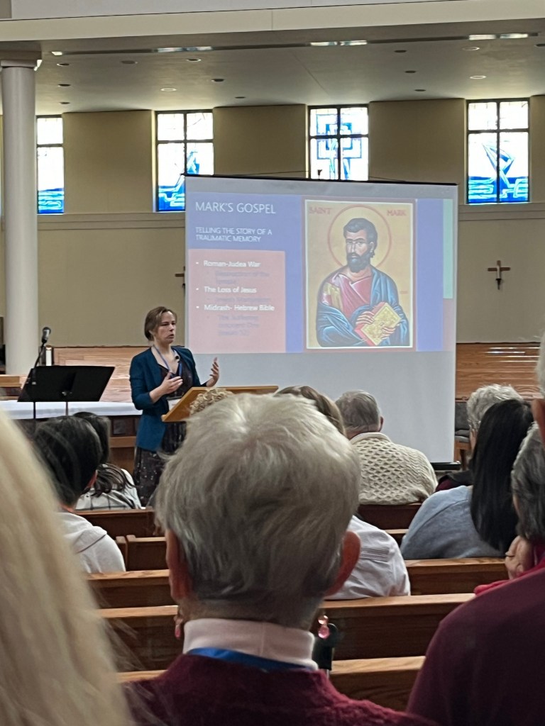 This year’s presentation went in an entirely new, but still fascinating, direction, as Dr. Ashley Theuring from Xavier University led a discussion of trauma – its definitions, effects and the responses to it. She did so by comparing it to the crucifixion, empty tomb and resurrection of the risen Lord, perfectly timed with the start of Lent this week.